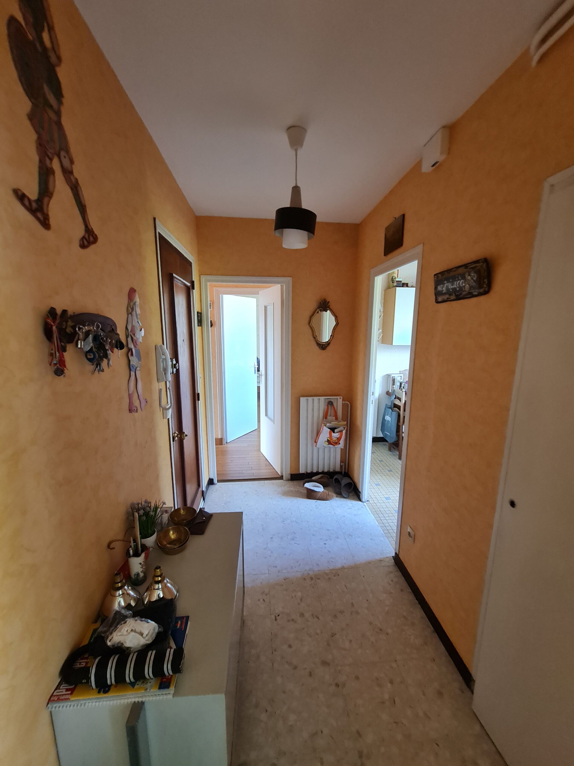 Situé au troisième étage sans ascenseur d’un petit immeuble sécurisé, soumis au régime de la copropriété, il comprend : entrée, cuisine indépendante aménagée, cellier, salon séjour avec cheminée décorative, balcon, dégagement, 3 chambres, salle d’eau, WC indépendants.